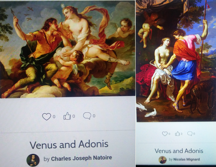 «شکسپیر با نبوغ فراگیرش مسئله ی بین این دو مسئله ی موازی را درک میکند. او در اولین شعر بلندش "ونوس و آدونیس" مستقیما با مسئله ی قربانی کردن در مدیترانه برخورد میکند. شکسپیر در این شعر، ونوس [عنوان رومی آفرودیت] را به صورت زنی میانسال و شهوانی، و آدونیس را به صورت پسر جوان بی تجربه ای مجسم کرده است که با تحریک ونوس، با او کامورزی میکند. کسانی که با اسطوره های یونانی آشنایی دارند میدانند که شکار گراز در پی آن خواهد آمد. گراز به آدونیس حمله میکند و به گونه ای ران او را تبدیل به میانه ی بدن زنان میکند. شکسپیر دراینباره چنین میگوید: