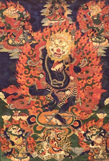 ترکیب آتش خورشید و آب هاویه ی زمینی، در اصطلاح اروپایی "پرستر" PRESTERخودنمایی میکند که به گفته ی دیوید ارنست واچر، هم به معنی سوختن است، هم به معنی آب ریختن، هم به معنی شن و ماسه و هم به معنی گردباد آتشین به صورت ستون آتش، و هم به معنی نوعی مار که نیشش باعث تشنگی سوزان میشود. بهاکتی آناندا گوسوامی، همه ی اینها را در تصویر ماری که نارایانا بر فراز آب های آغازین بر آن غنوده است جمع می آورد و این مار، سشا نام دارد که نامش از صدای "سیس" یا "هیس" مار می آید و همین صدا برای نامیدن حرف "اس" لاتین با صدای "س" به کار میرود که نگاره اش S به شکل یک مار در حال حرکت است. به نظر وی ستون آتشی که یهوه با آن، بنی اسرائیل را در سفرشان از مصر راهنمایی کرد از همین طریق به تجسم این هیولای آتشین درون آب های آغازین ربط می یابد.: