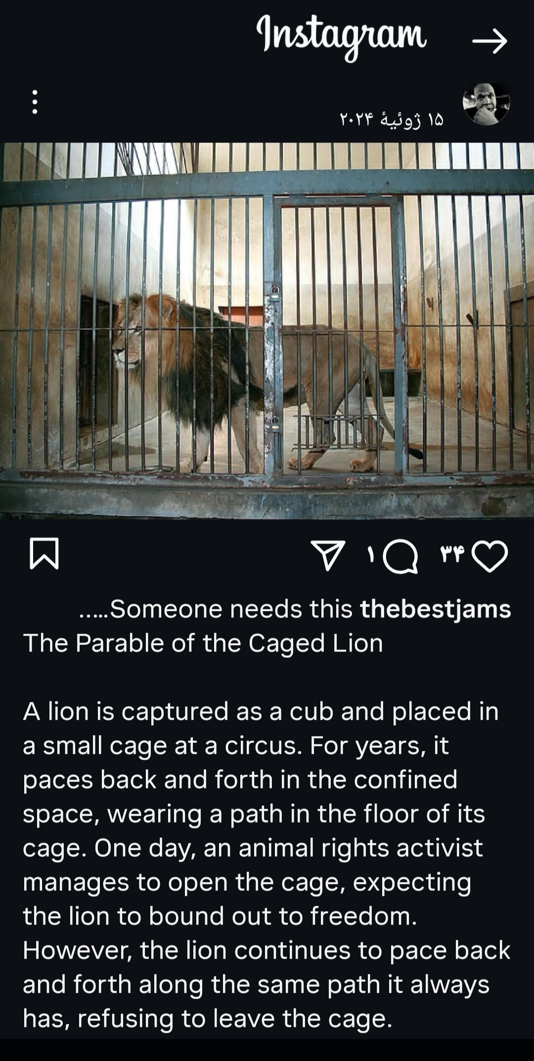 برای انسان امروزی دنیا آنقدر بزرگ هست که حکومت های بزرگ داشته باشد؛ چون هرچقدر دنیا بزرگتر باشد دام های بیشتری وجود دارند: تصاویر لرزانی از انواع و اقسام نفس های انسانی که مانند خود را با خود و تصویر طعمه های مناسب، اسیر چاه میکنند و به بندهای نادیدنی درمی آورند. تا وقتی شیر و خرگوش در جهان مادی نباشند، عکس های آنها در آب چاه های دستساز نخواهد افتاد.