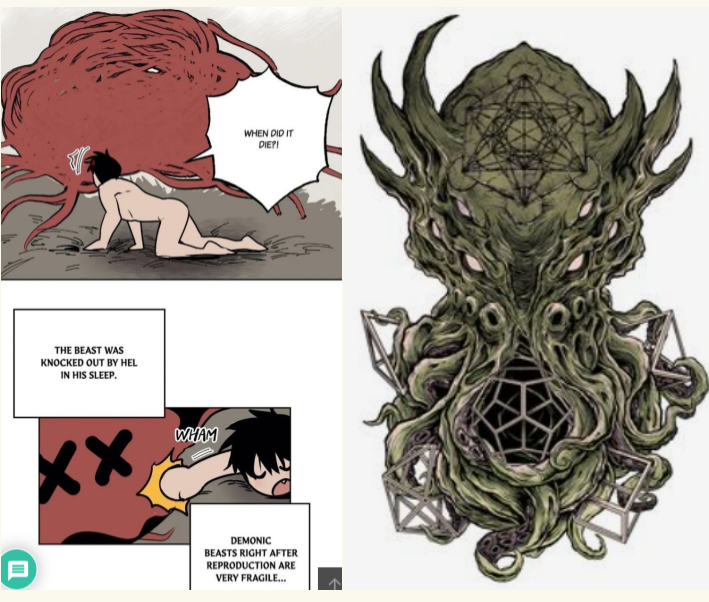 «انگار این نقاشی، وسیله ای بود که این ایده از یک نیروی ابدی تاریک، گستاخ و بی معنی، که همه چیز تابع آن است، توسط آن بیان میشد... یادم می آید کسی بازویم را گرفت، شمعی در دست داشت و نوعی رتیل عظیم و نفرت انگیز را به من نشان داد، به من اطمینان داد که این همان موجود تاریک، کور و قادر مطلق است و به خشم من خندید.»